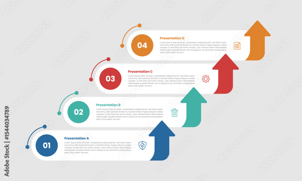 4 stage infographic diagram with round box rectangle step stair case ...