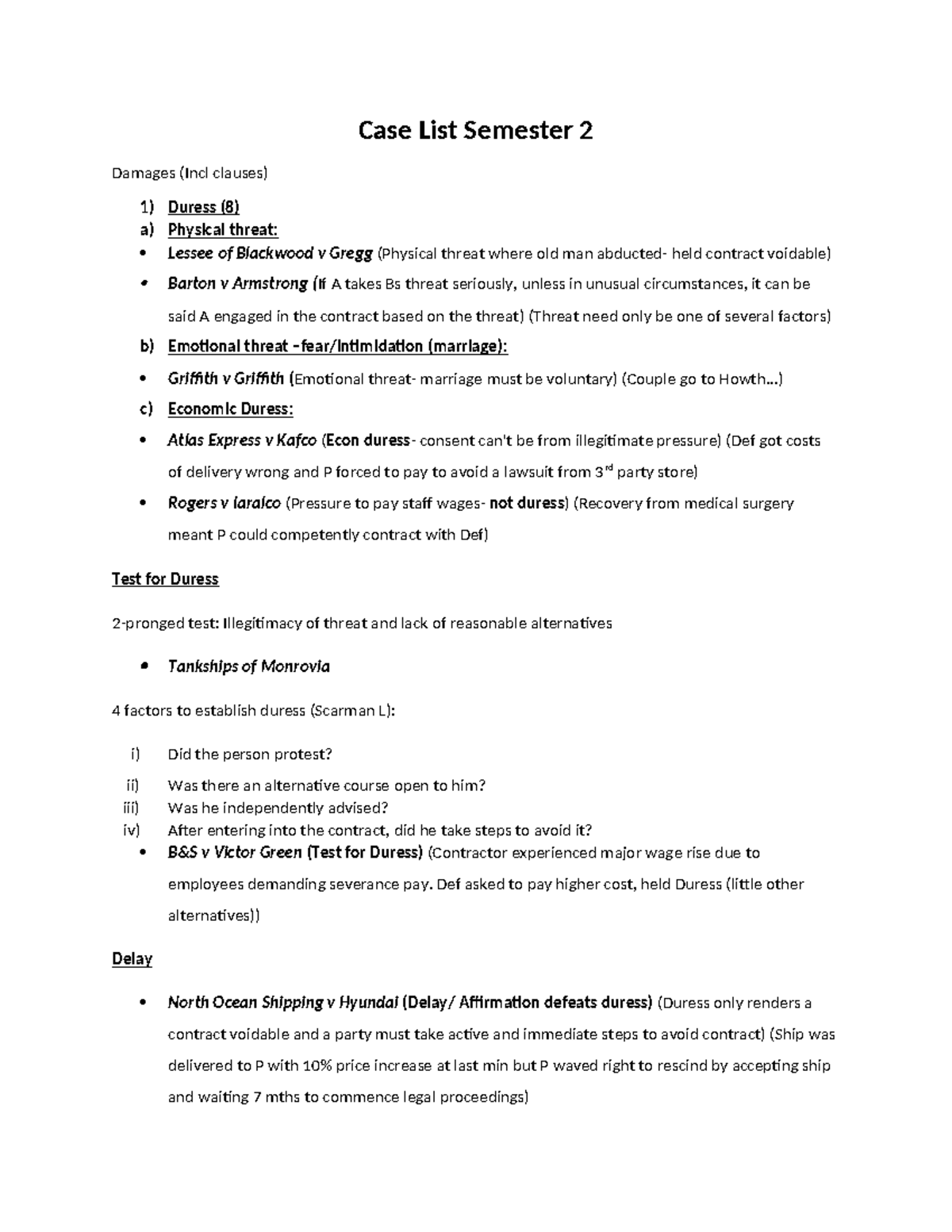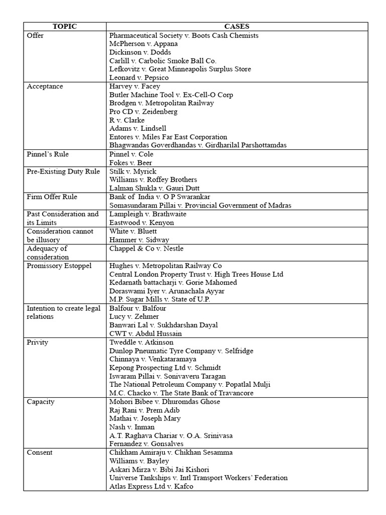 Contract Law - CASE LIST for Exam Preparation - Studocu