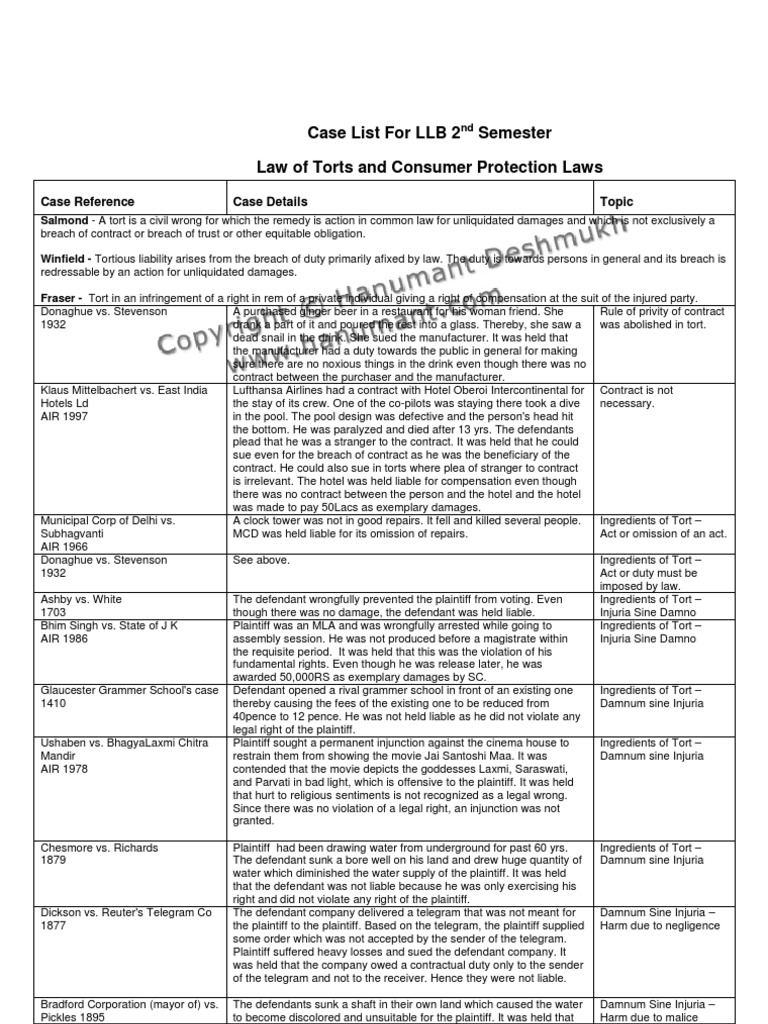 Tort Case List sample - case list - Tort Case List Trespass to the ...