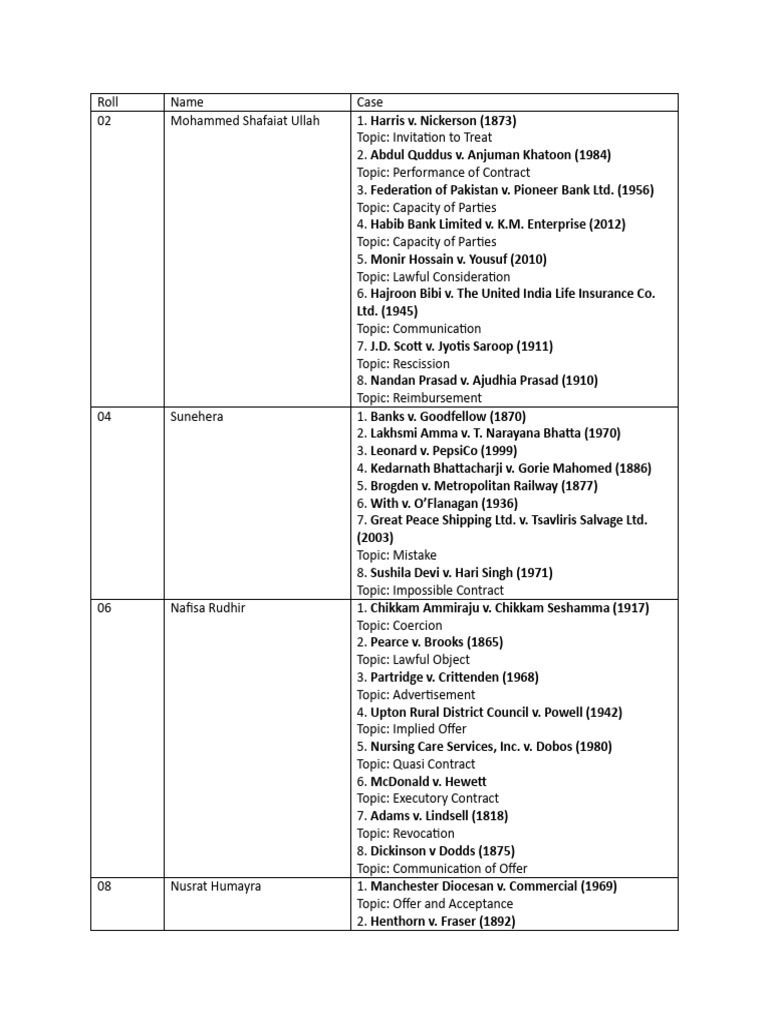 Case List | PDF | Contract Law | Business Law