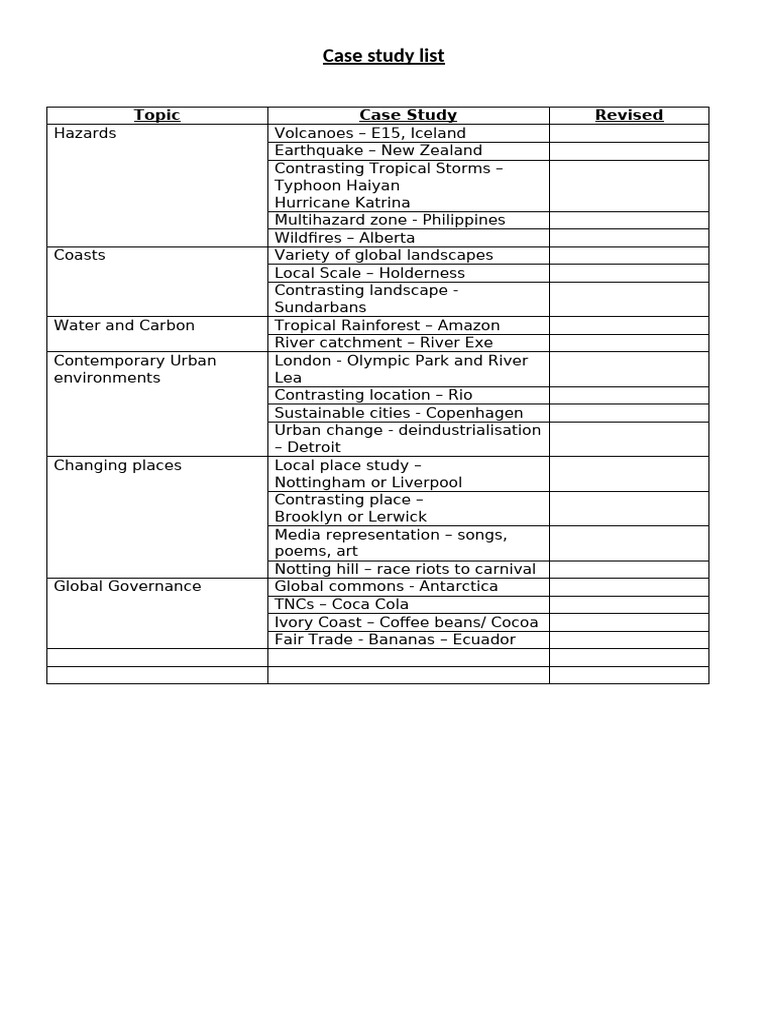 List of Case Studies | Download Table