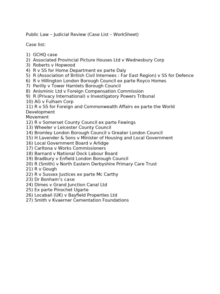 Case List - JR - Worksheet | PDF