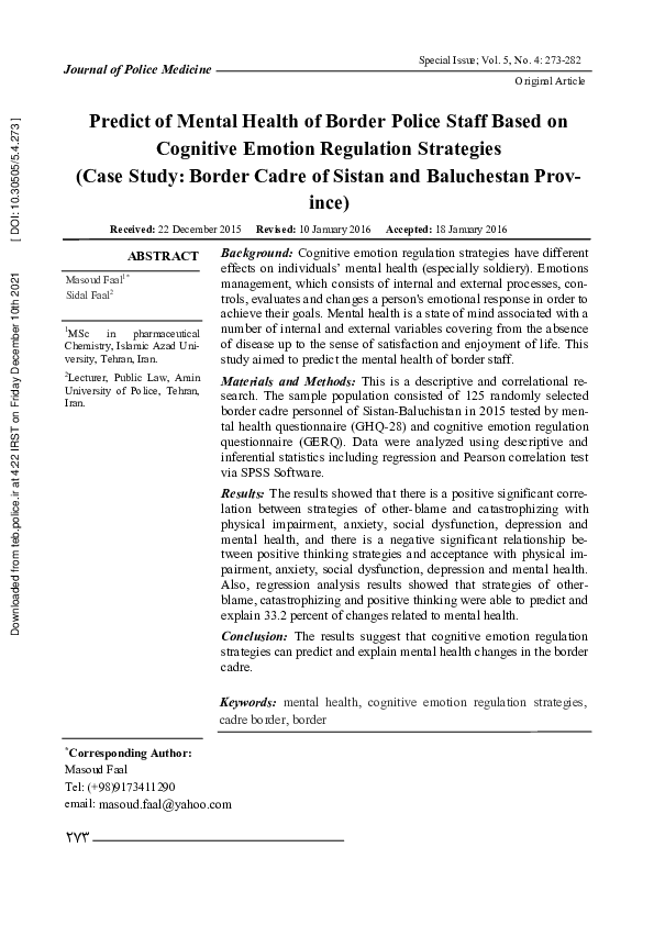 (PDF) Predict of Mental Health of Border Police Staff Based on ...