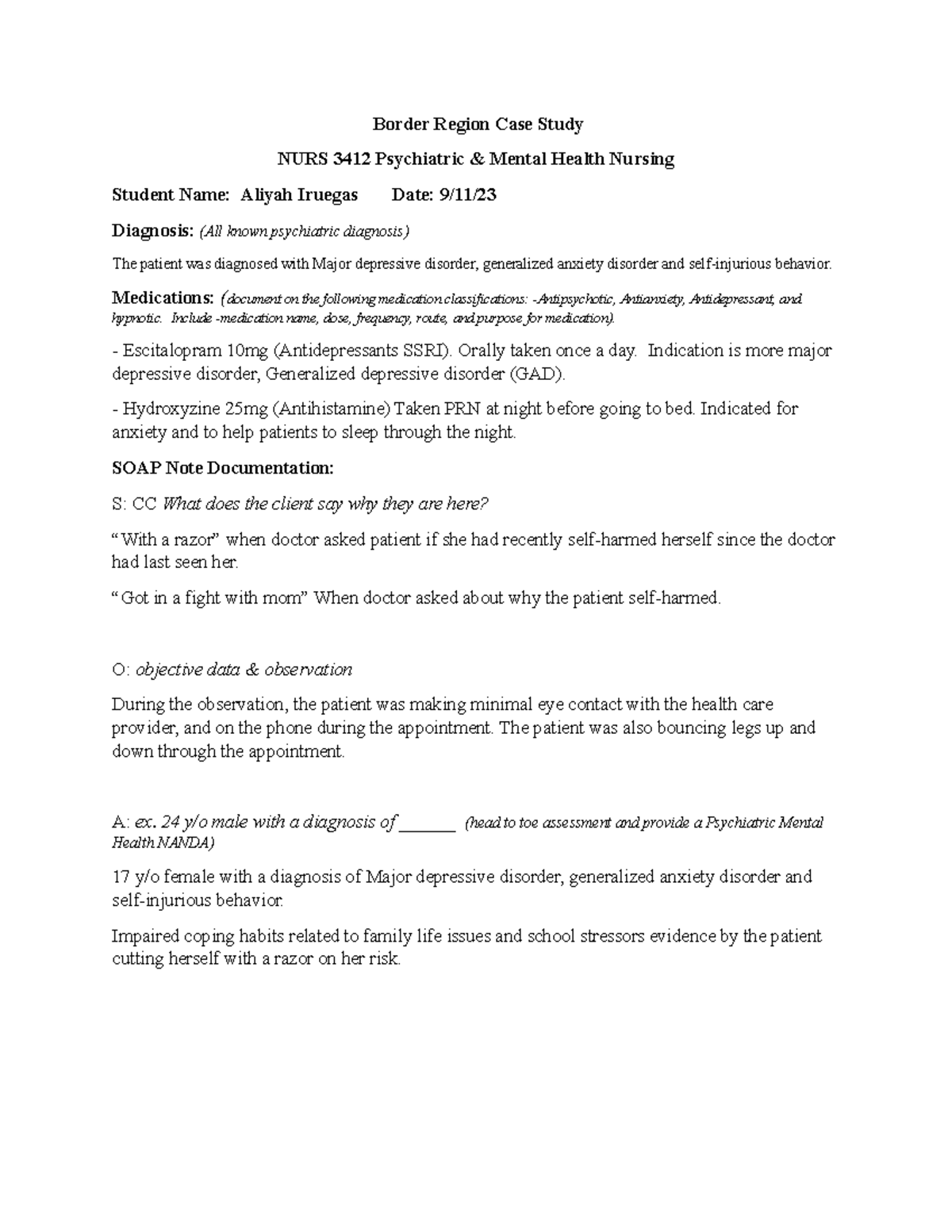 Border Region CASE Study - Border Region Case Study NURS 3412 ...