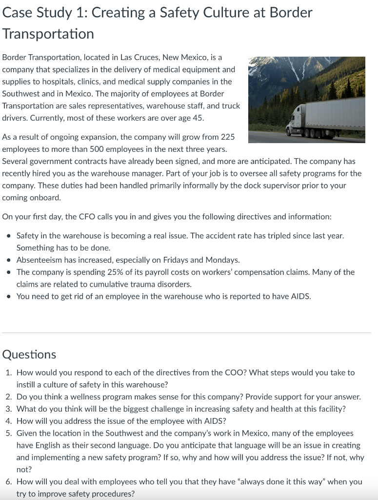 Solved Case Study 1: Creating a Safety Culture at Border | Chegg.com