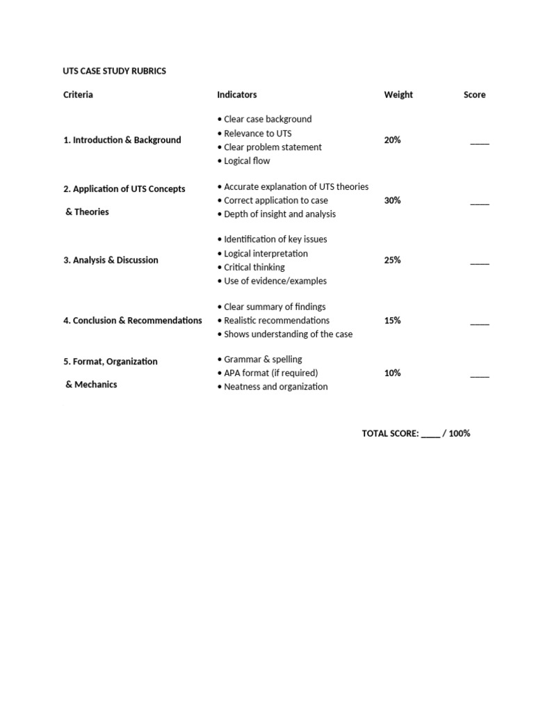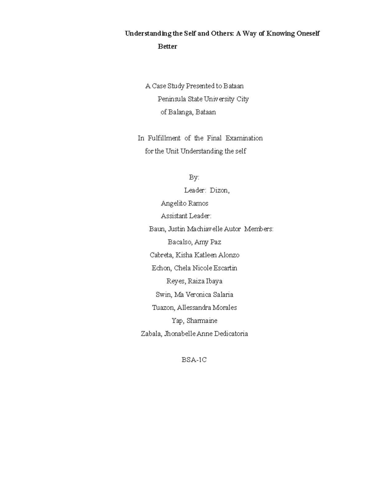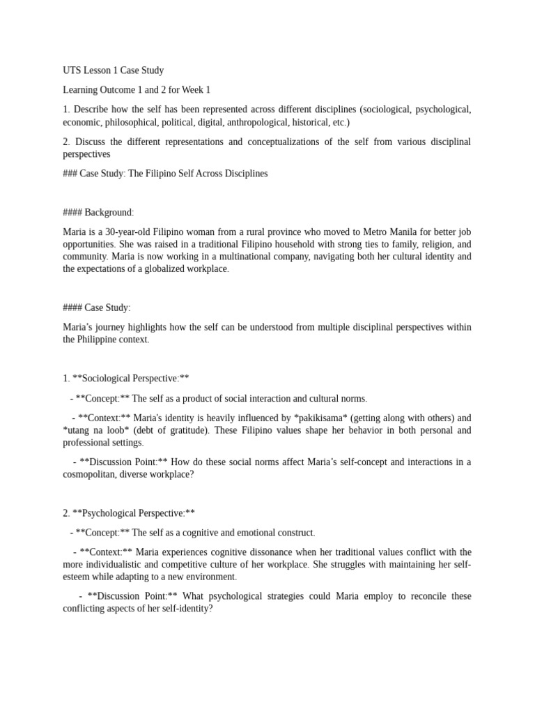 Case study UTS ( Revised) a study for learning oneself - Understanding ...