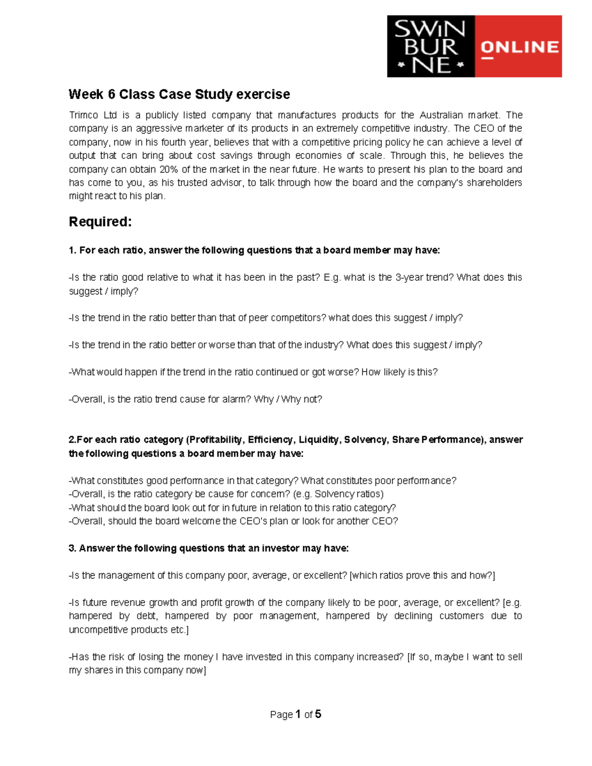 Week 6 - Class Case Study [Trimco] - Week 6 Class Case Study exercise ...