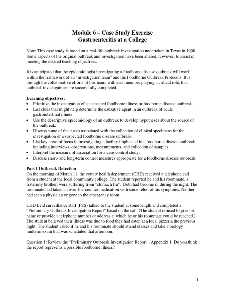 Module 6 - Case Study Exercise Gastroenteritis at A College: Learning ...
