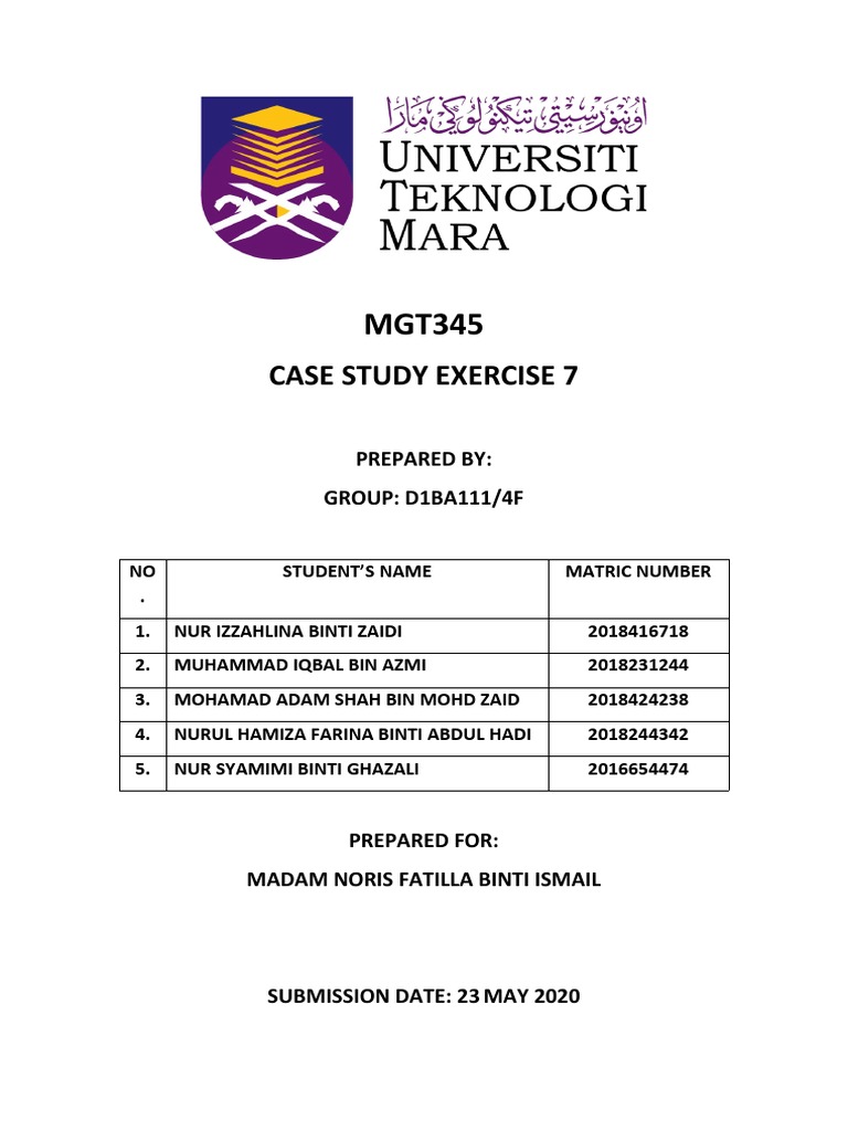 Case Study Exercise - example case answer - Subject Code: UCR 2612 ...