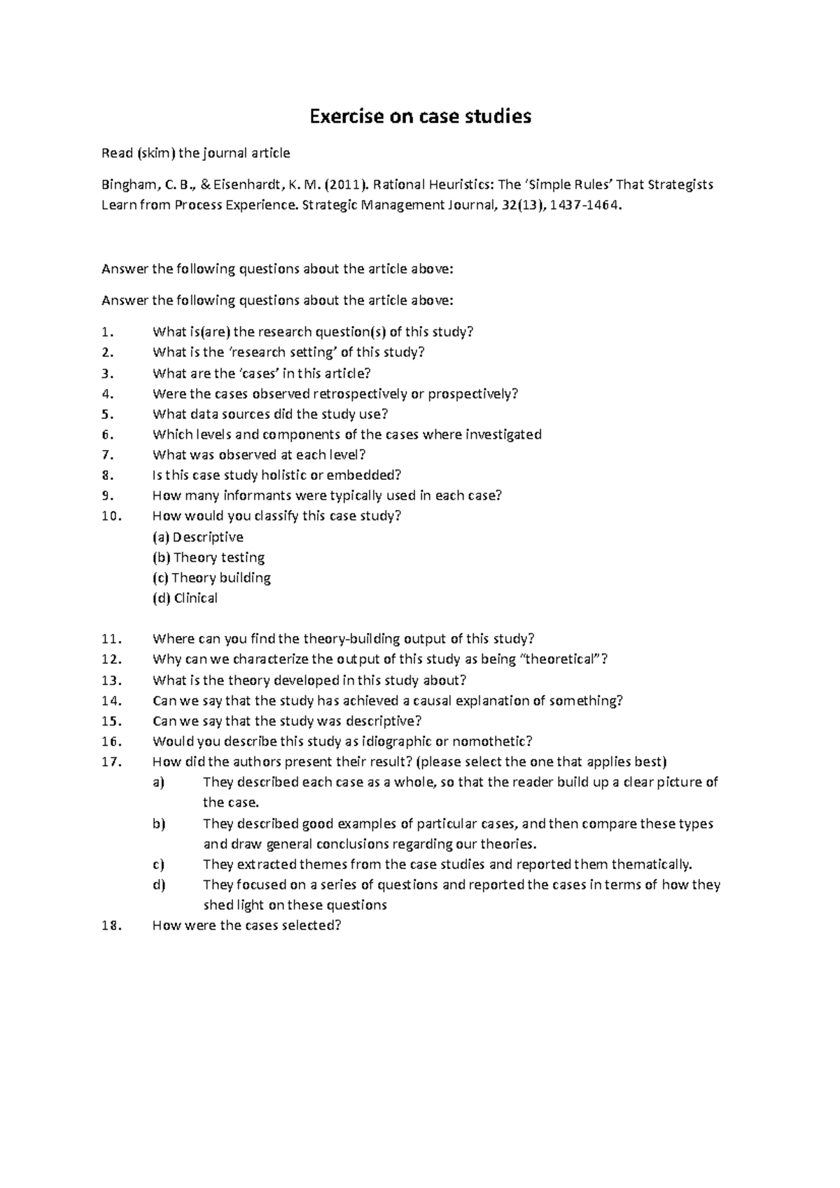 Answer key Exercise on case studies - Exercise on case studies Read ...
