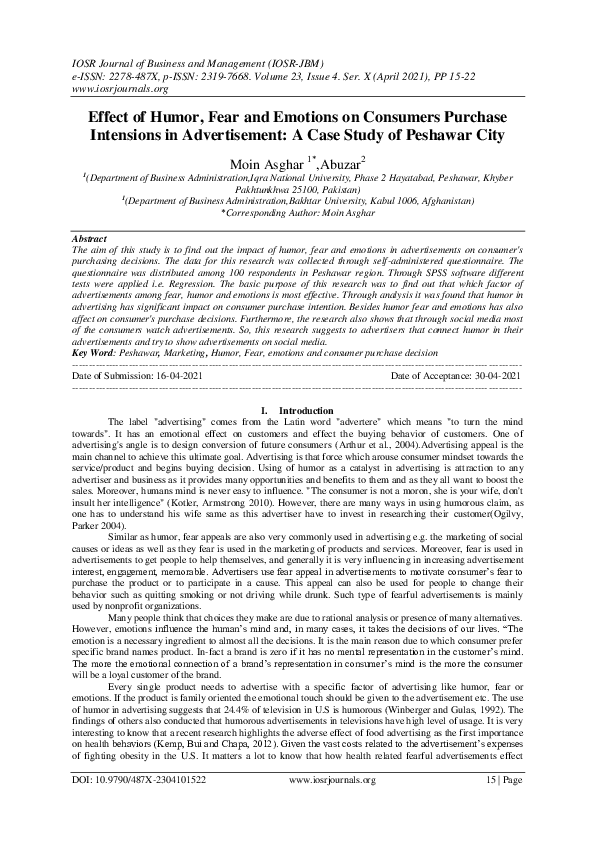 (PDF) Effect of Humor, Fear and Emotions on Consumers Purchase ...
