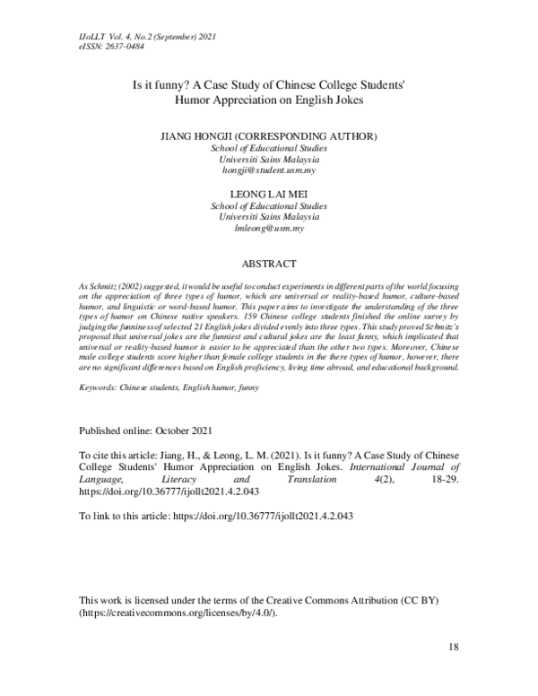 (PDF) Is it funny? A Case Study of Chinese College Students' Humor ...