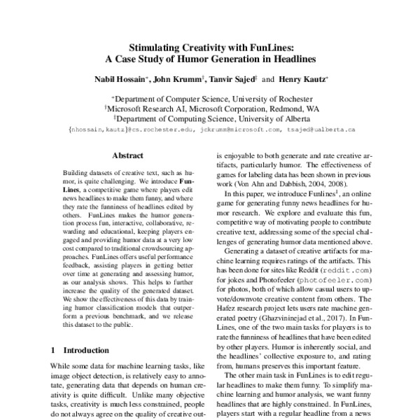 Stimulating Creativity with FunLines: A Case Study of Humor Generation ...