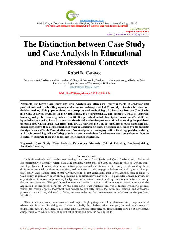 (PDF) The Distinction between Case Study and Case Analysis in ...