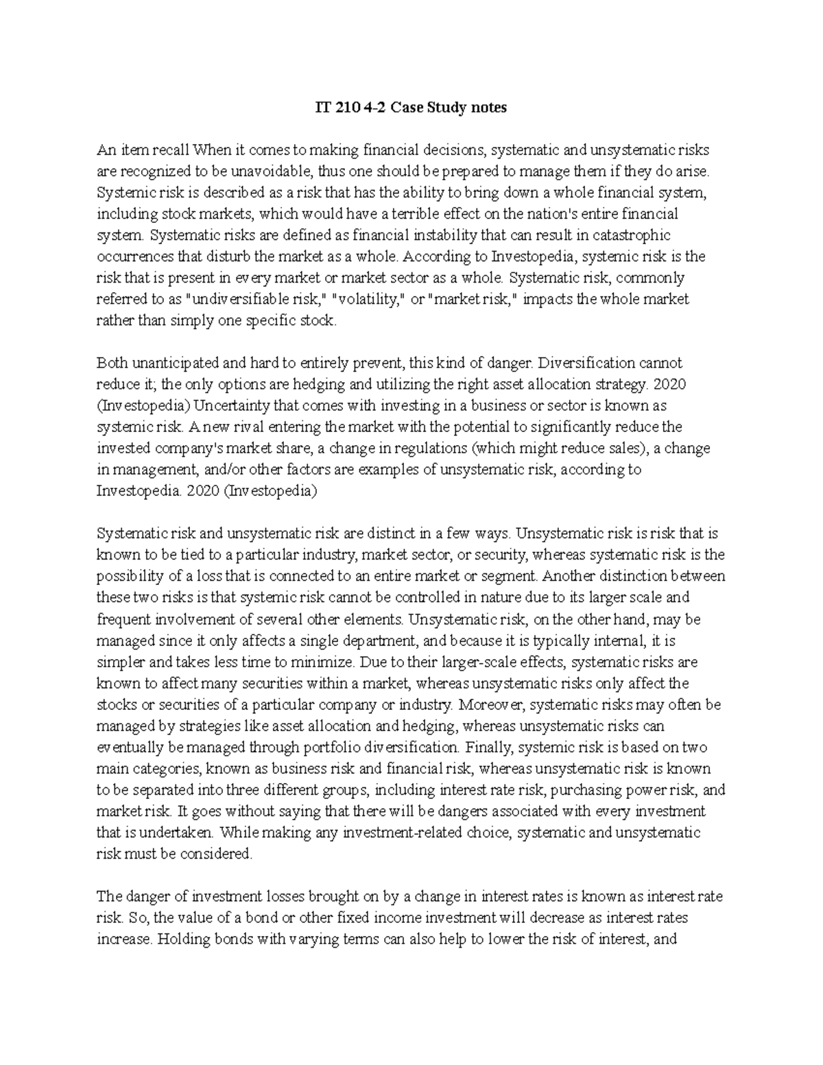 IT 210 4-2 Case Study notes - IT 210 4-2 Case Study notes An item ...