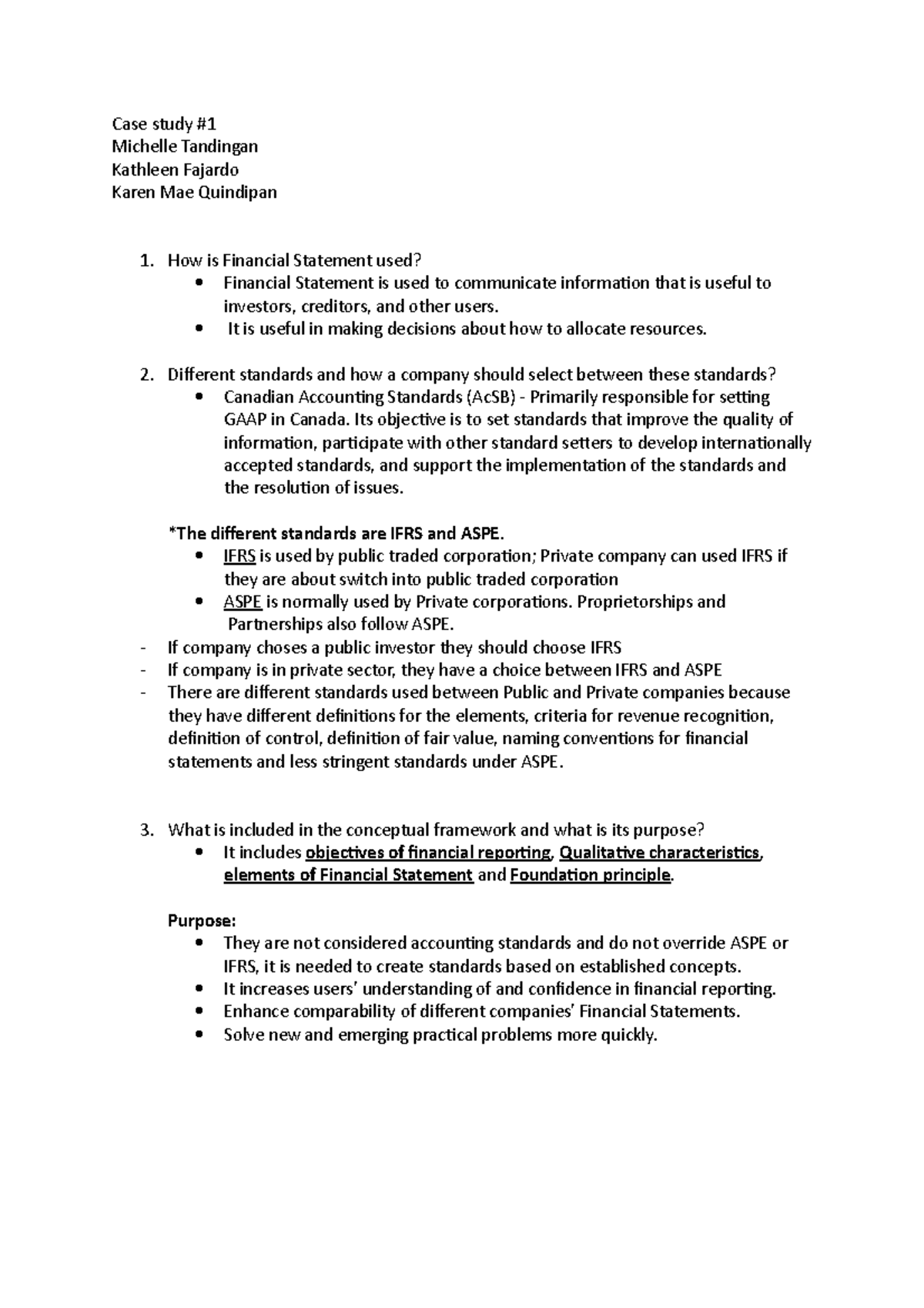 Case study - notes to everything - Case study # Michelle Tandingan ...