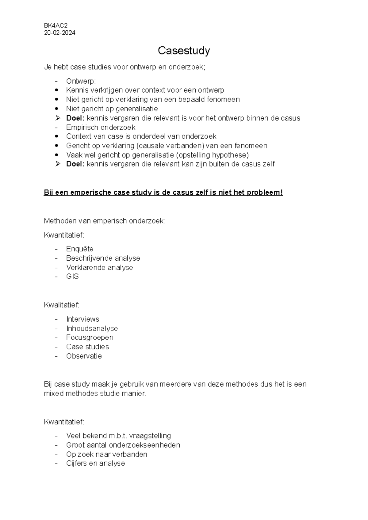 College Case Study Notes - 20-02 Analysis and Methods - Studeersnel