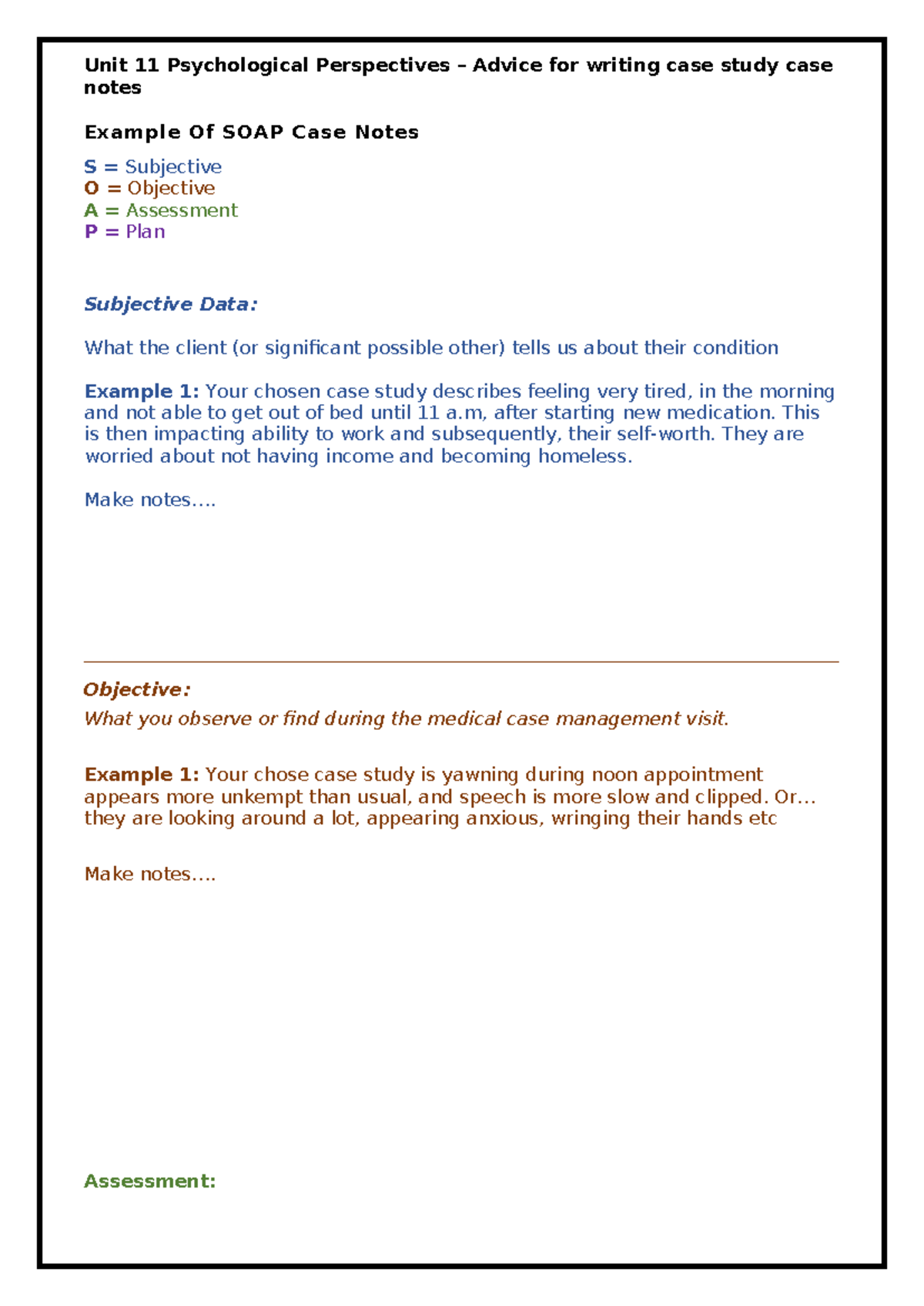 Unit 11 Case Study Notes: SOAP Format Guidance - Studocu