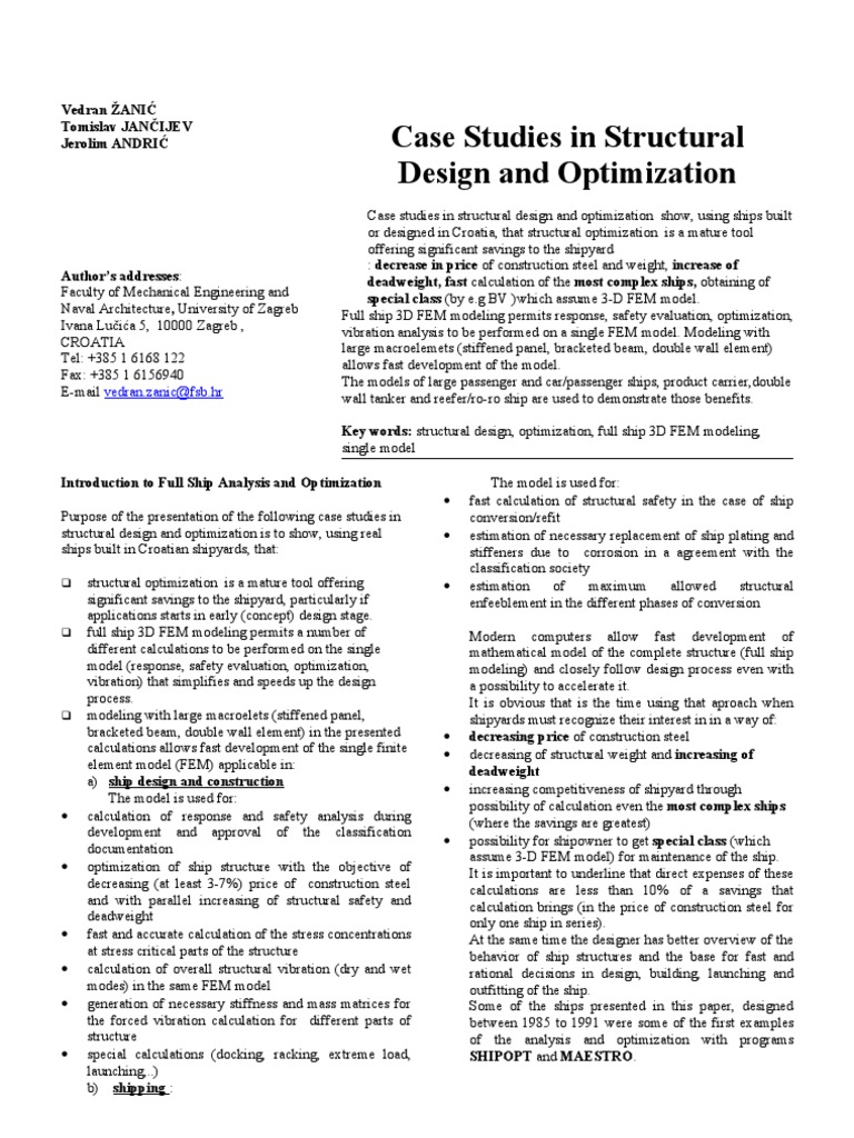 Case Studies in Structural Design and Optimization | PDF | Finite ...