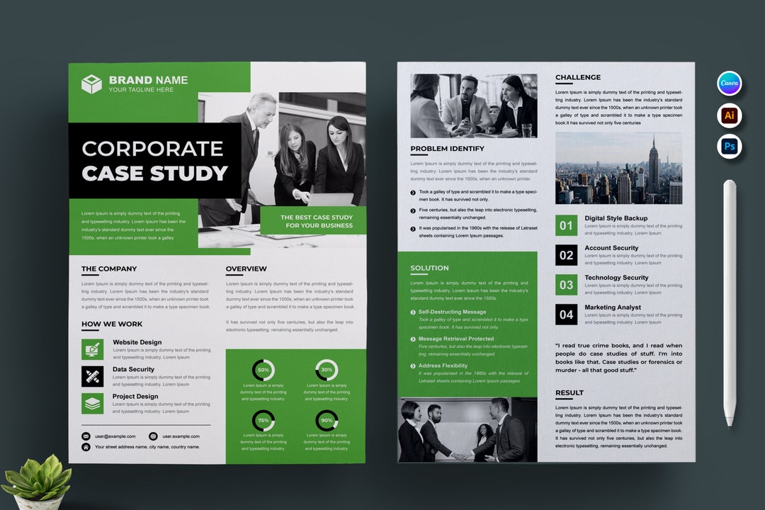 Case Study Layout With Green Accents Instant Download & Canva Editable ...