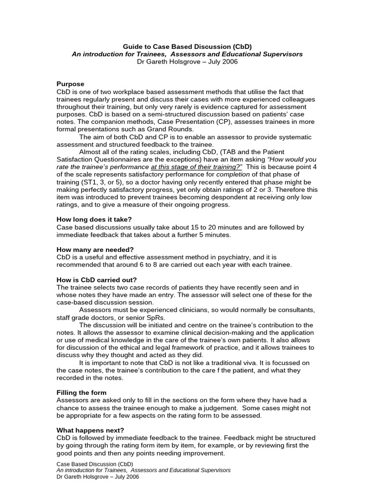 Case Based Discussion Guide for Trainees | PDF | Health Care | Medicine