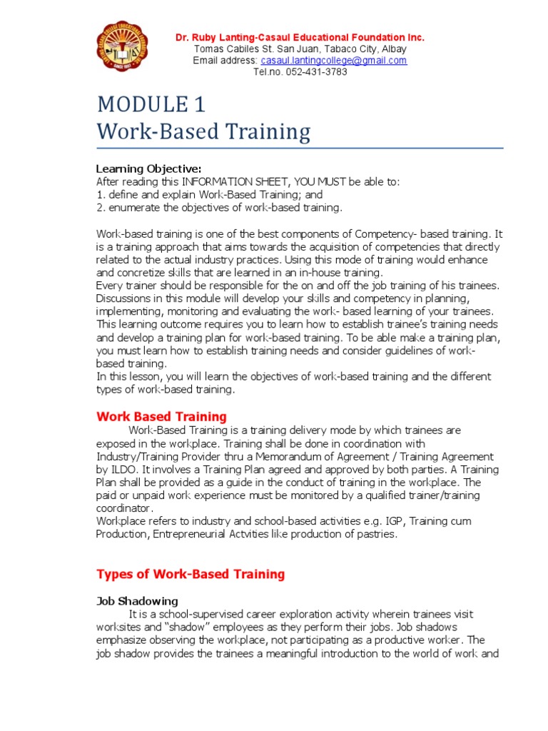 Module 1-Work-Based Training | PDF | Apprenticeship | Vocational Education