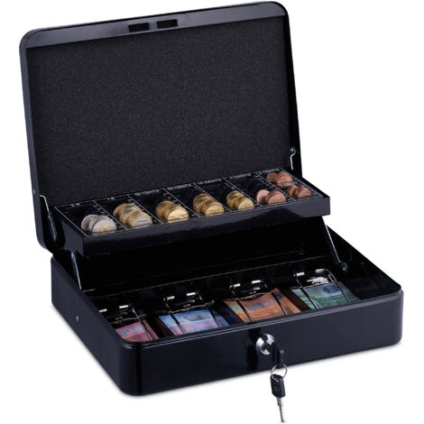 Relaxdays Cash box, lockable, iron, coin counting board & 4 note ...