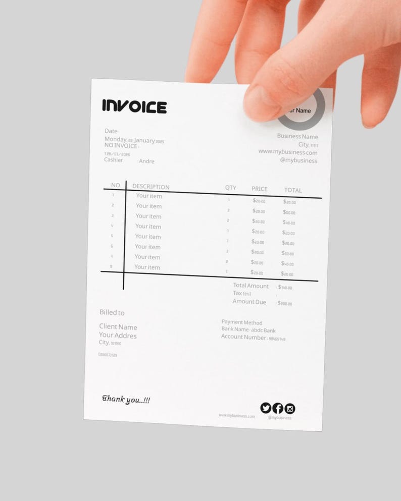 Minimalist Invoice Template, Invoice Editable, Printable Small Business ...