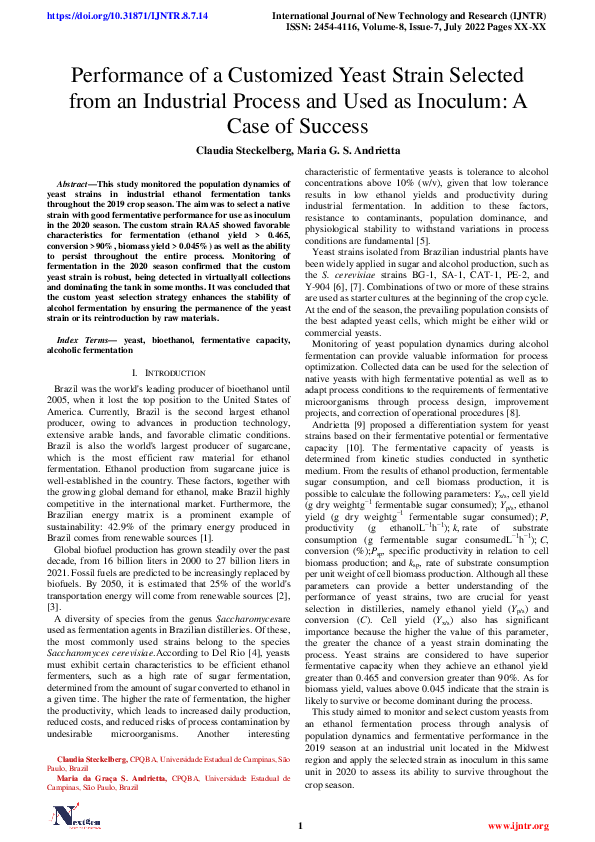 (PDF) Performance of a Customized Yeast Strain Selected from an ...