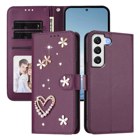 Dteck Wallet Phone Case for Samsung Galaxy S26, Magnetic Floral Bling ...