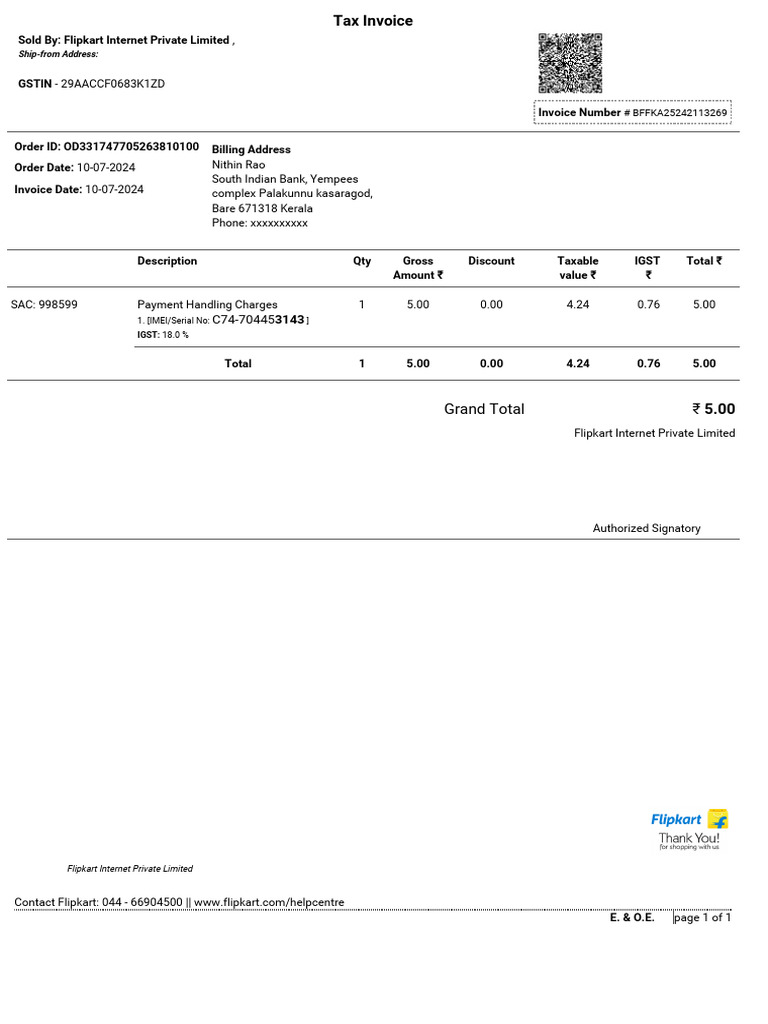 Tax Invoice for Casio Keyboard Purchase | PDF | Invoice | Taxes