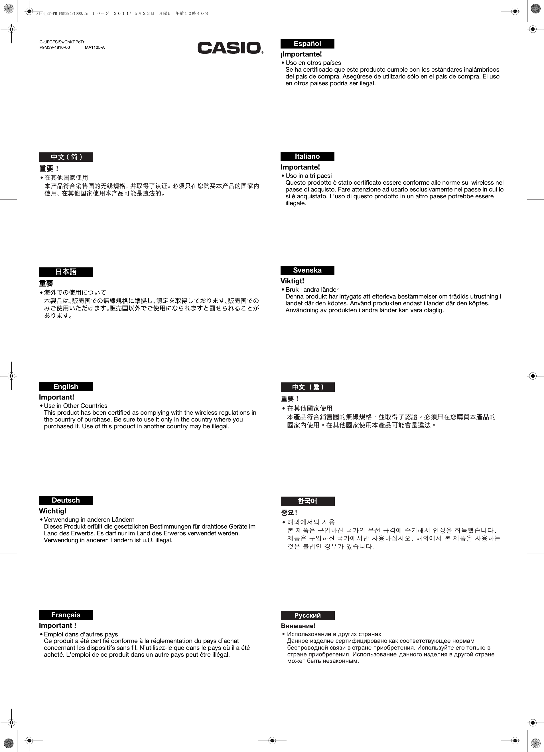 Other Information Module No. 3554 - Support - CASIO
