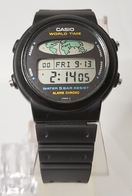 RARE VINTAGE CASIO W-60u world time alarm chrono lcd watch japan module ...