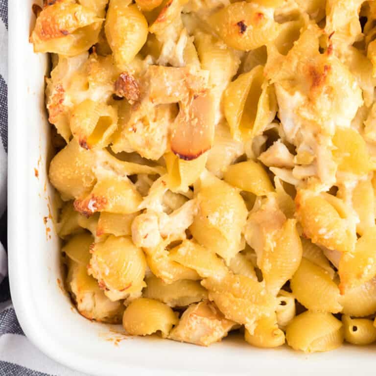 Easy & Quick Chicken Spaghetti Shells Casserole - The Lazy K Kitchen