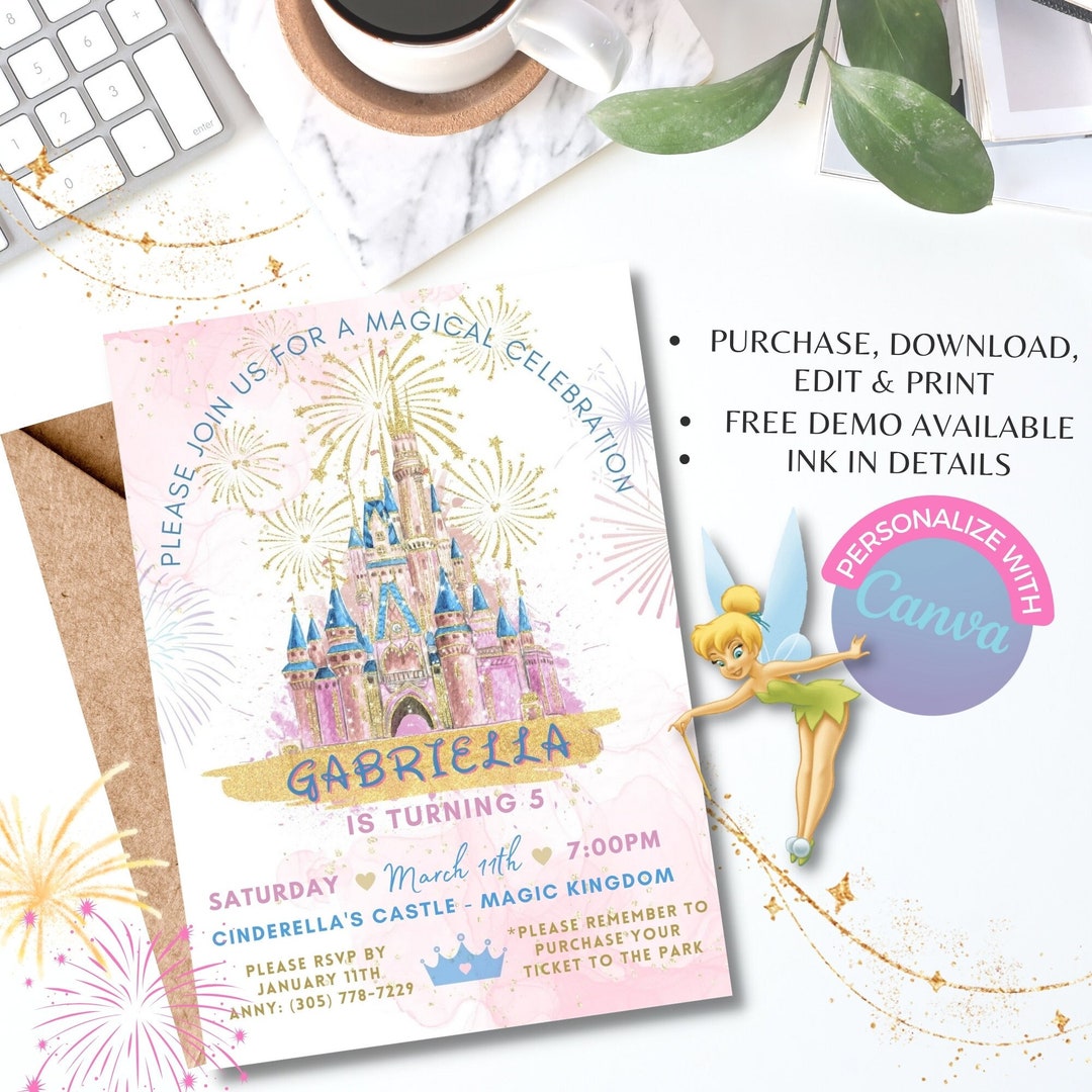 EDITABLE Cinderella’s Castle Birthday Invitation | Fully Customizable ...