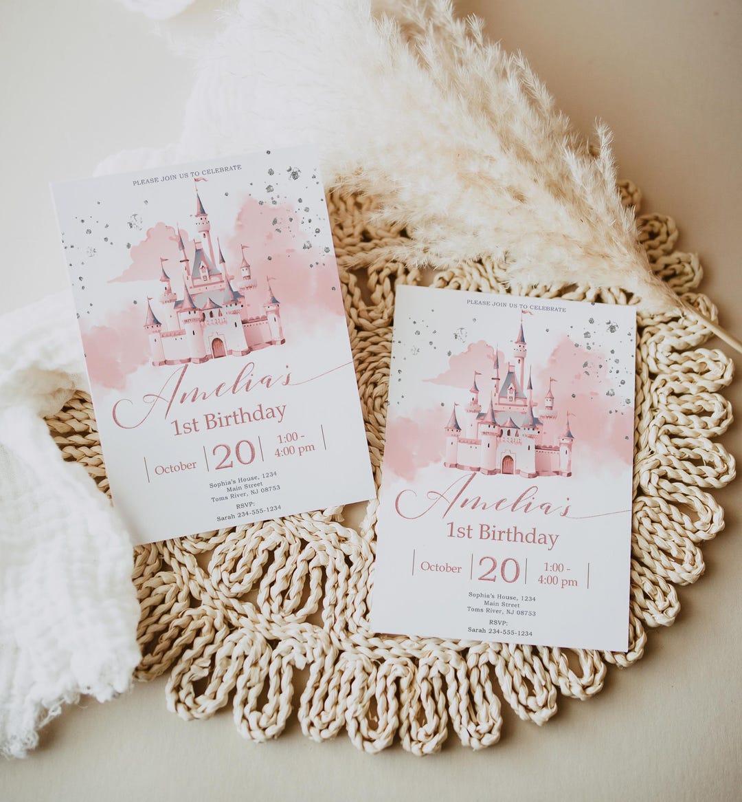 Castle Birthday Invitation, Pink Castle Card, Castle-themed Invite ...