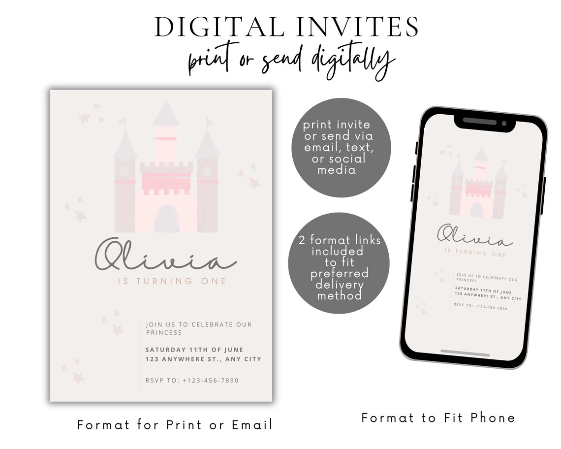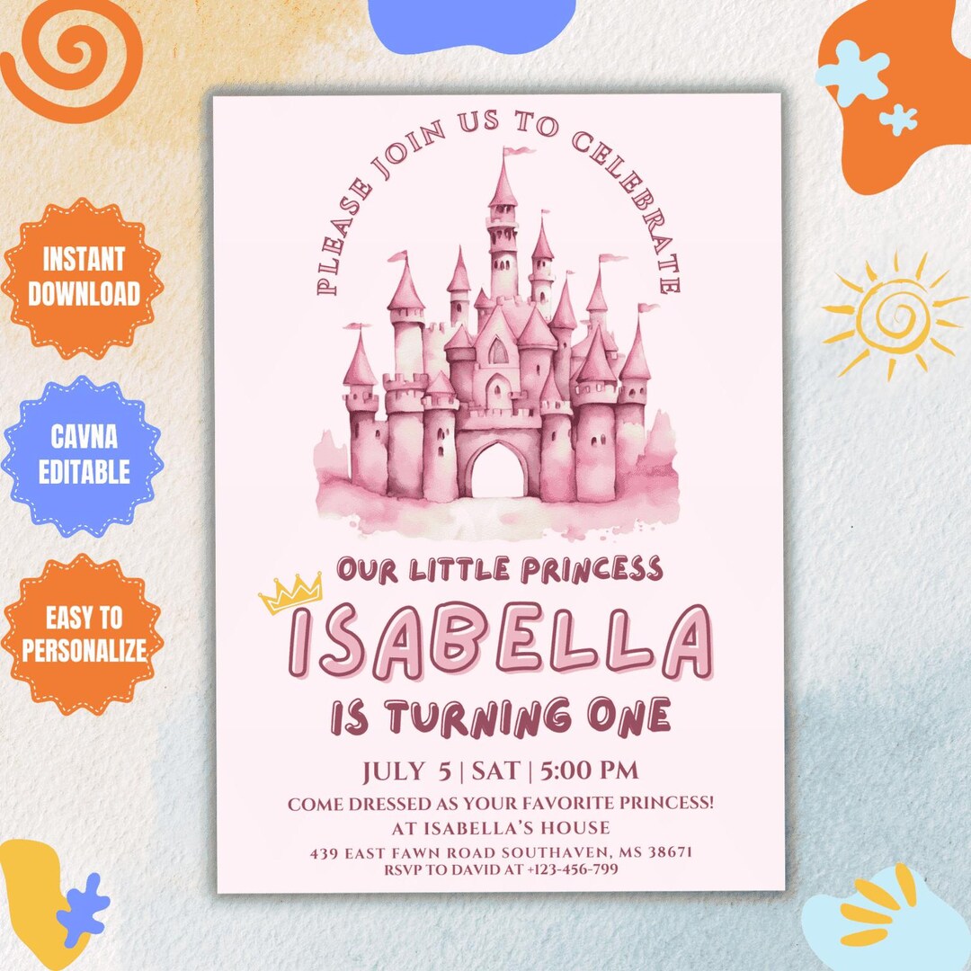 Princess Castle Birthday Invitation, Editable Princess Invitation ...
