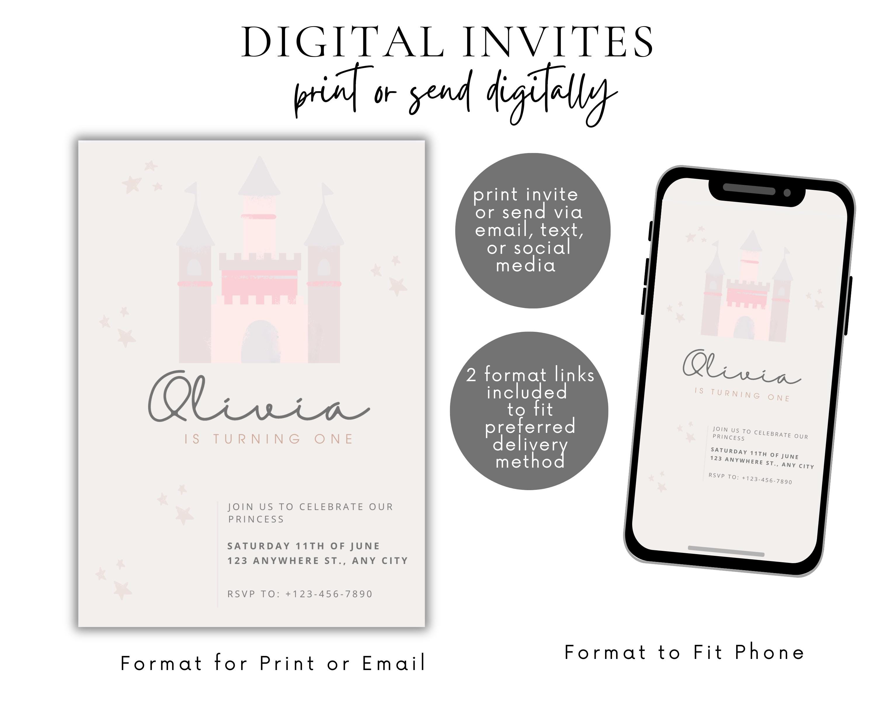 Castle Birthday Invitation Printable Princess Party Invite - Etsy