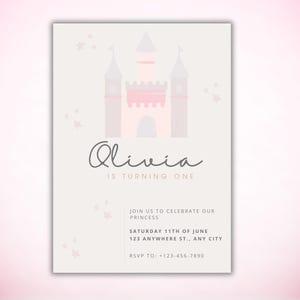 Editable Pink Princess Castle Birthday Invitation Template, Charming ...