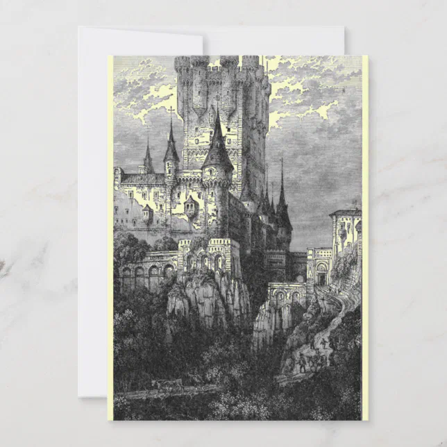 Elegant Vintage Castle Illustration Wedding Invitation | Zazzle