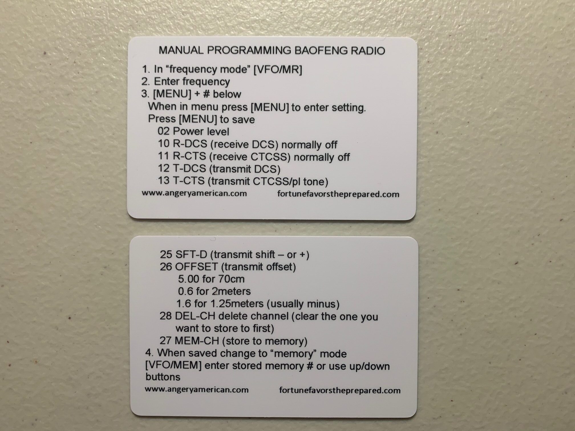 Baofeng Quick Programming card - Fortune Favors the Prepared
