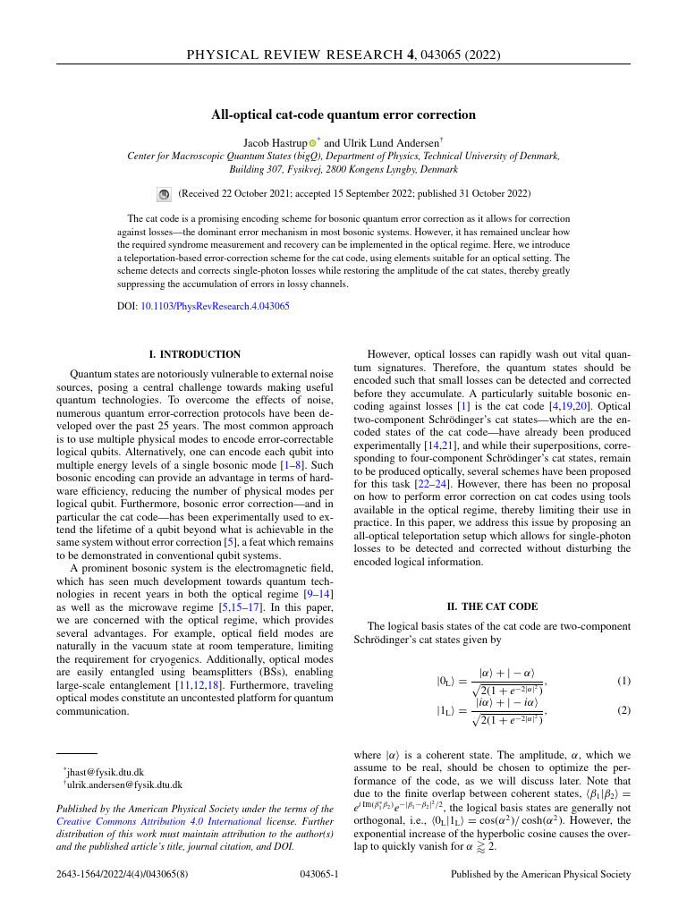All-Optical Cat-Code Quantum Error Correction | PDF | Theoretical ...