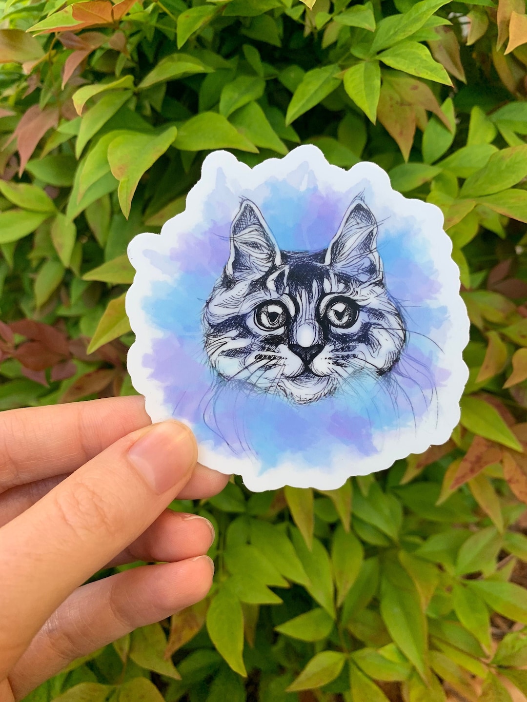 Kawaii Cat Sticker Watercolor Cat Sticker Whimsical Cat Sticker Cat ...