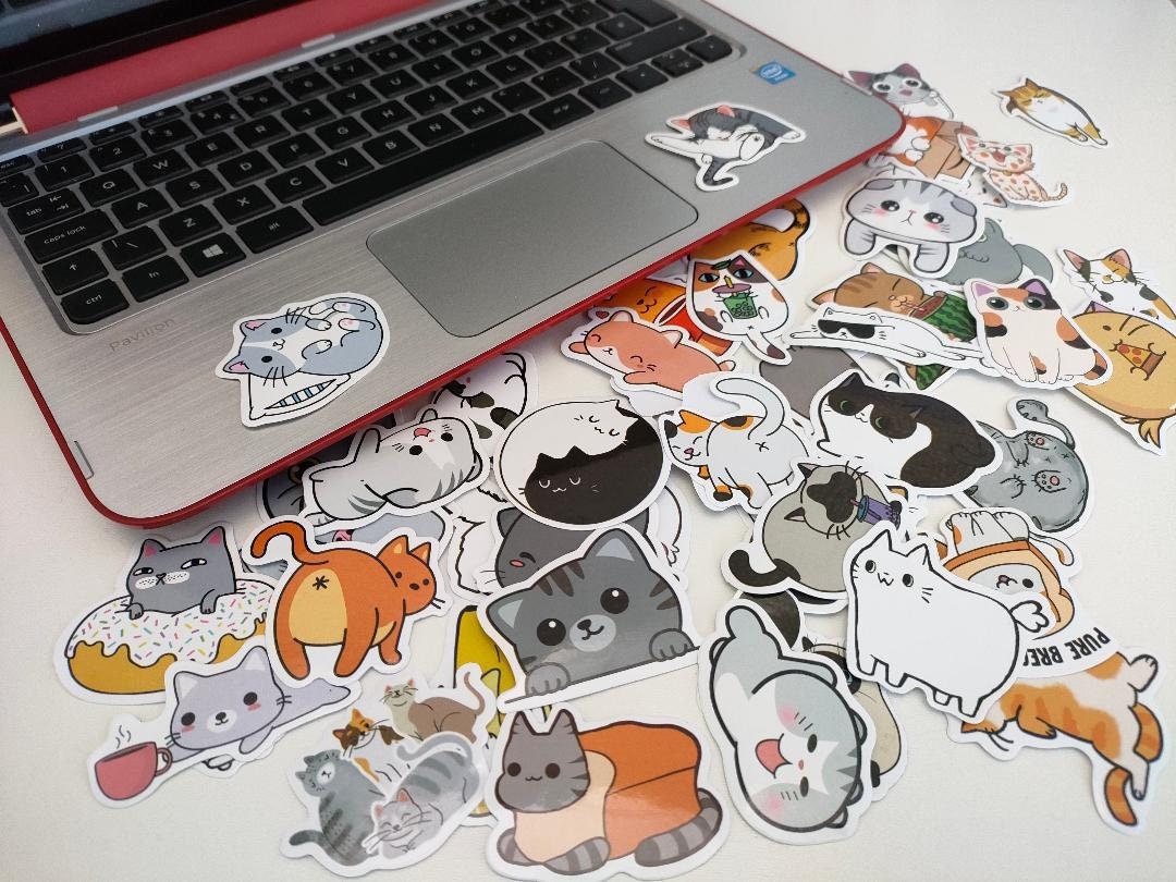 Cat laptop stickers 2 cute custom cutting stickers | Shopee Philippines