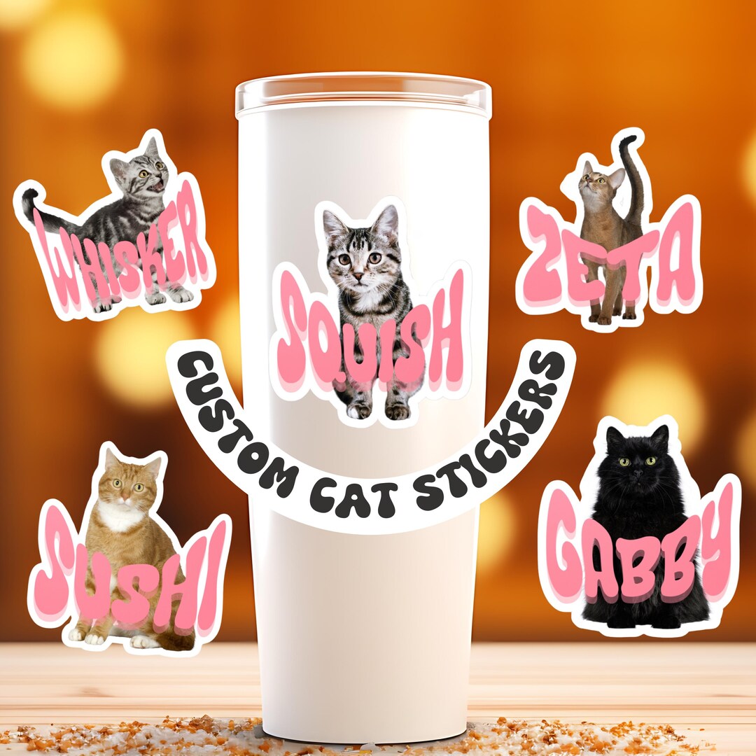 Custom Cat Sticker, Custom Cat Portrait, Black Cat Sticker, Cat ...