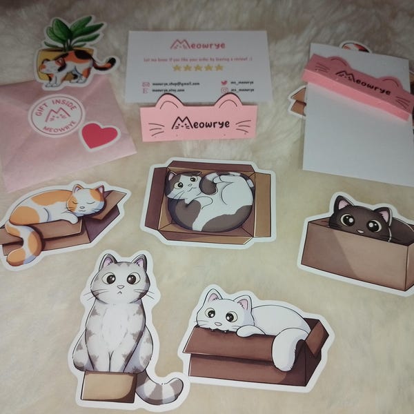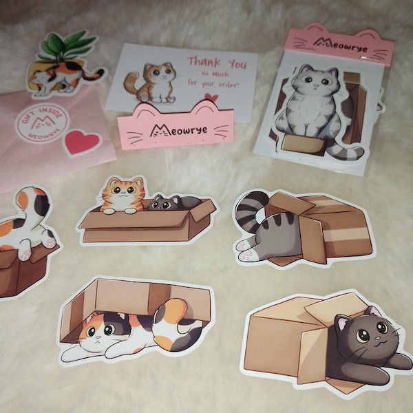Cute Cat in Box Sticker - Calico Cat Sticker - Gift for Cat Lovers ...