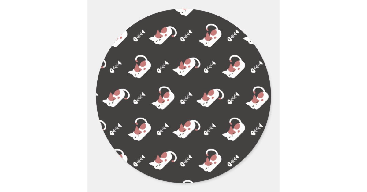 Sleeping Cat and Fish Bone Pattern II Classic Round Sticker | Zazzle