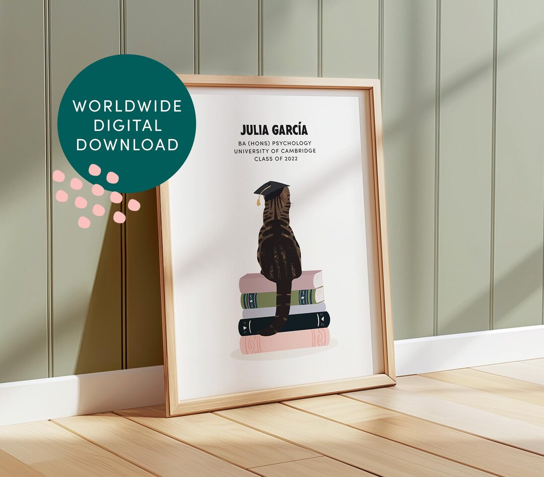 Personalised Graduation Cat Print (digital Download), Custom University ...