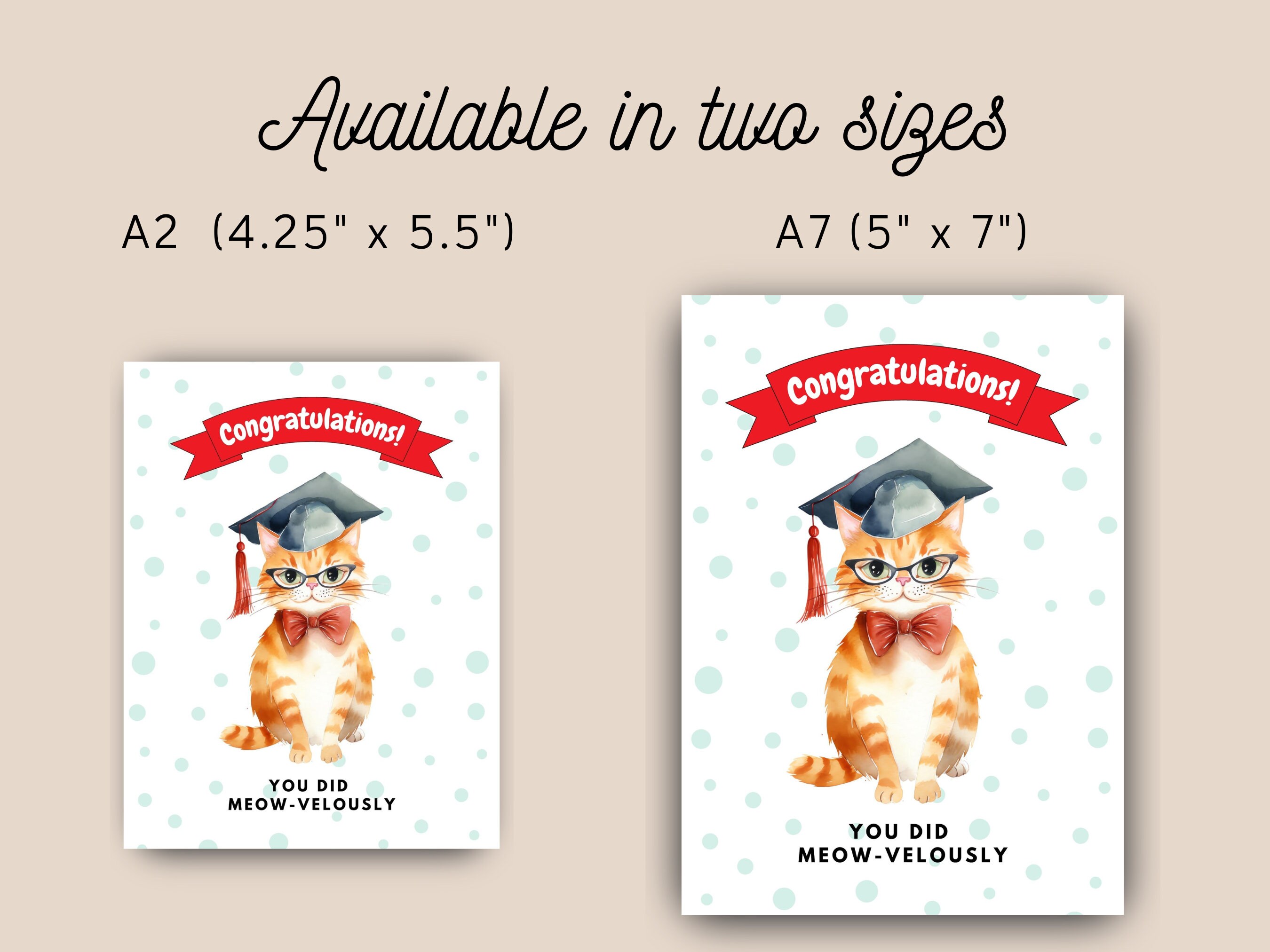 Cute Cat Graduation Card | Printable Congratulations Card (PDF, PNG ...