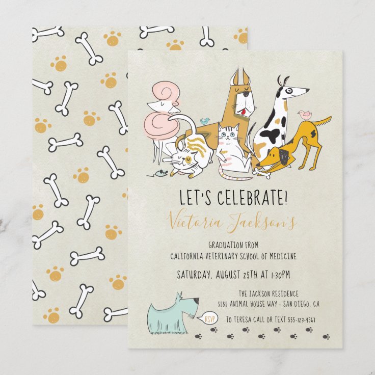 Dogs cats and birds Veterinarian School Graduation Invitation | Zazzle